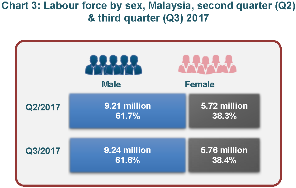 Year-on-year, the increase of labour force participation in Malaysia (0.3 percentage point) was contributed by the increase of female labour force participation of 0.4 percentage point.