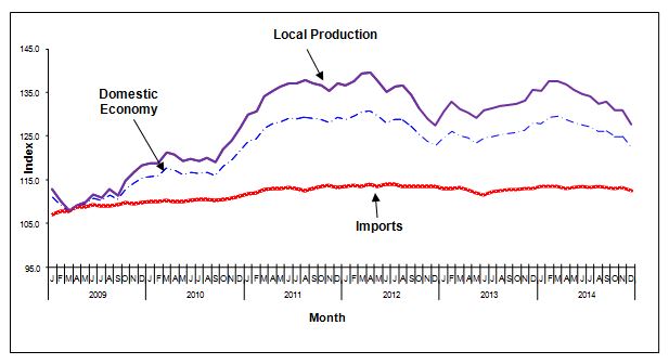 Graph 1: Producer Price Index – Domestic Economy, Local Production and Imports, 2009-2014