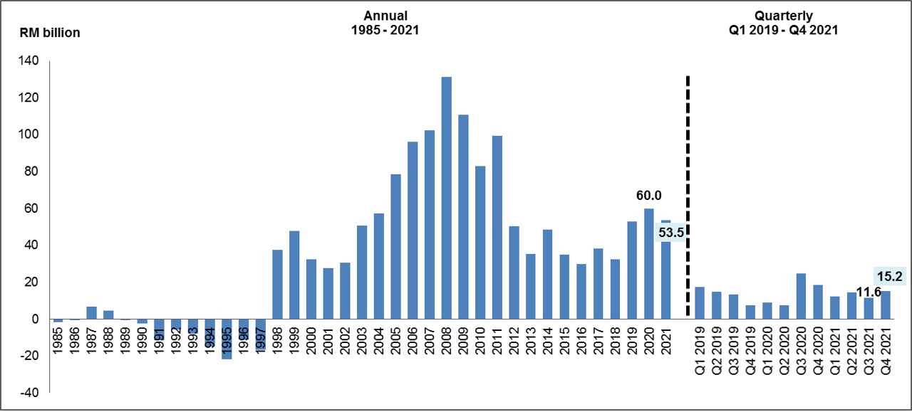 Malaysia’s Current Account surplus reached RM15.2 billion while FDI soared to RM24.7 billion in the final quarter 2021,