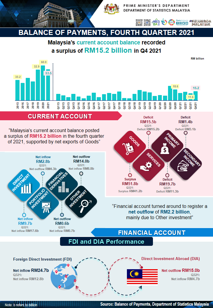 The full publication of Quarterly Balance of Payments, Fourth Quarter 2021 can be downloaded through eStatistik portal.