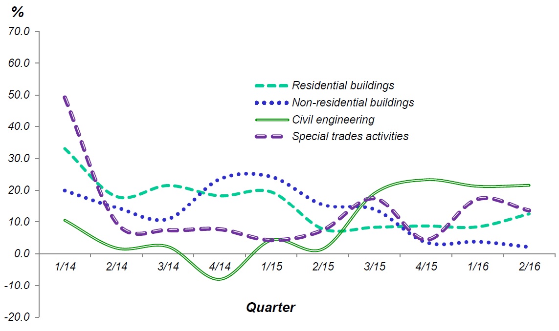 Chart 2 : Annual percentage change by type of activity, Q1 2014 - Q2 2016