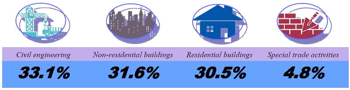 The highest growth was contributed by the civil engineering sub-sector with 21.6 per cent, followed by the special trades activities (13.5%), residential buildings (12.5%) and non-residential buildings (2.1%) as shown in Chart 2.
