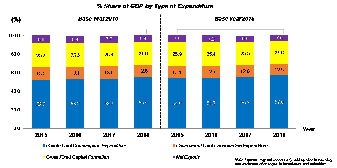 Department of Statistics Malaysia (DOSM) has completed the rebasing of Malaysia’s Gross Domestic Product (GDP) from base year 2010 to 2015. GDP Constant prices are now expressed in 2015 prices. Rebasing of GDP is a normal statistical procedure performed by National Statistical Office around the world to ensure the statistics reflect the current economic structure.