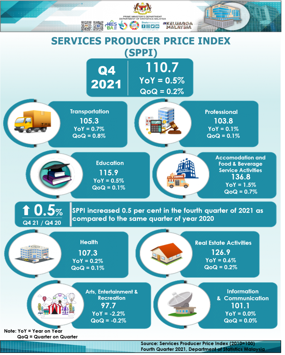 The full publication of the Services Producer Price Index, Fourth Quarter 2021 can be downloaded through eStatistik portal.