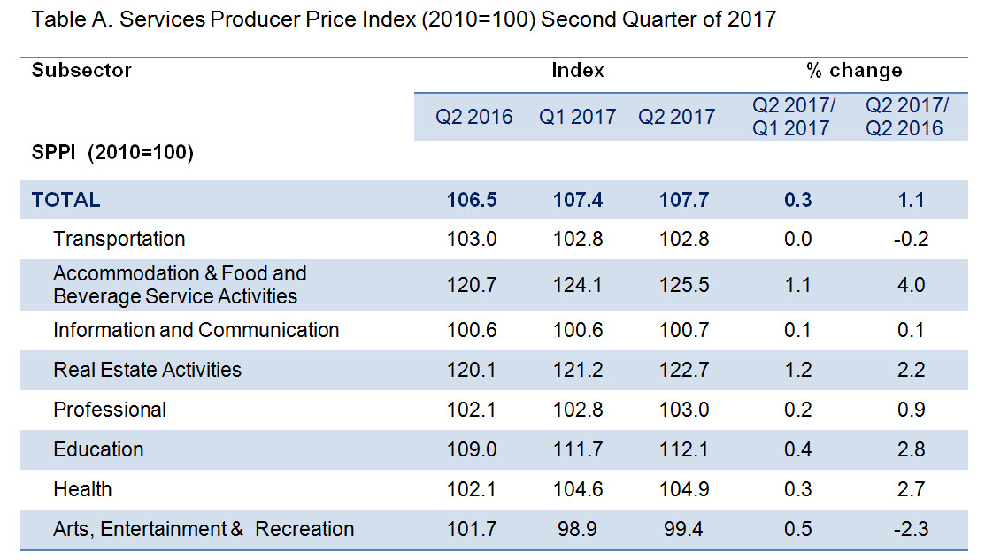 SERVICES PRODUCER PRICE INDEX (2010=100) SECOND QUARTER 2017