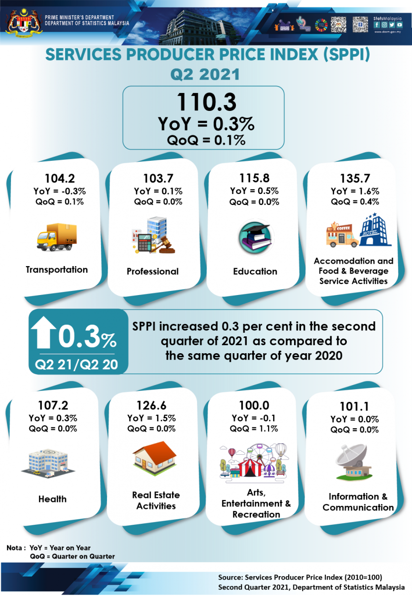 The full publication of the Services Producer Price Index, Second Quarter 2021 can be downloaded through eStatistik portal.