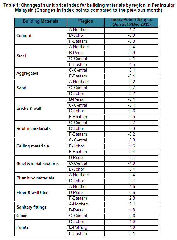 Meanwhile the BCI (with steel bars) for some building categories showed decreases in January 2016 compared to December 2015.