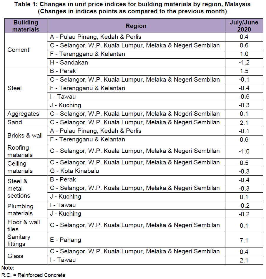 The performance of BCI in Peninsular Malaysia showed an increase between 0.1 and 0.5 per cent for almost all building categories in all regions except for region B (Perak) and region D (Johor). In Perak, a decrease of BCI by 0.1 per cent occurred in Timber building. However, in Johor, the BCI remained unchanged as compared to the previous month.